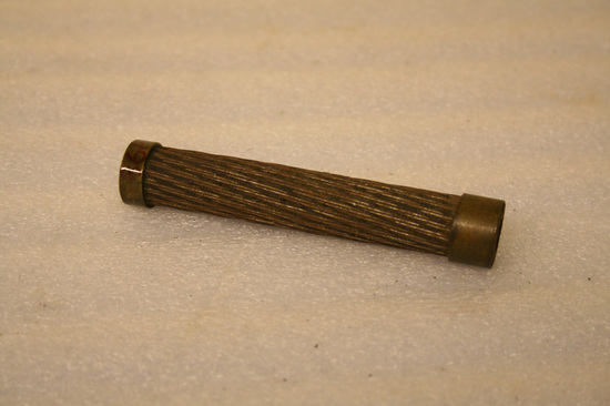 Round brass collars on each end of cable. Exterior of cable is twisted iron strands with insides concentric layers of copper and iron strands.