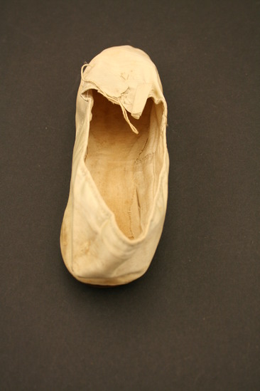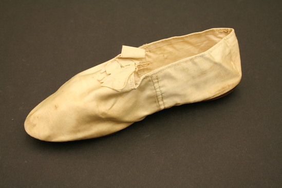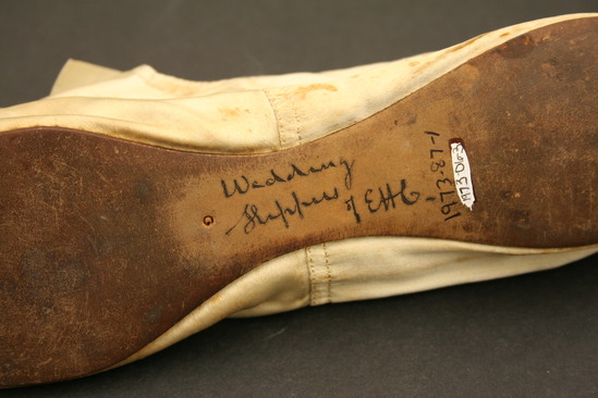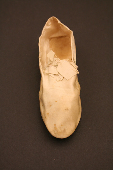 Wedding slipper of Elizabeth H. Cruse of Baltimore who married Robert Creighton of Philadelphia on December 20, 1823; Elizabeth Cruse was donor's great-great-aunt.
