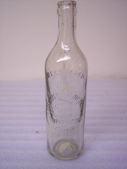 Clear glass bottle with impressed lettering on side "REGISTERED/ARTESIAN BOTTLING WORKS/TORRINGTON/CONN"