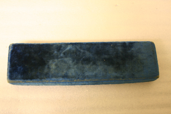 Fan box - exterior covered in blue velvet.