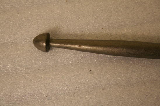 Long handle knob end pointed mushroom style; curved shovel with tapered sides