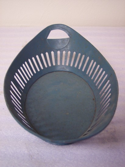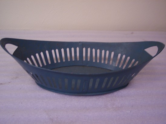 Oval bread basket with perforated decoration around sides. Modern teal paint.