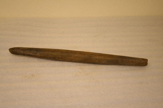 Smooth, round piece of wood, tapers at each end