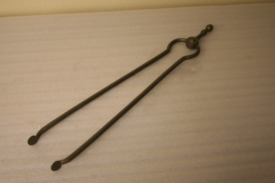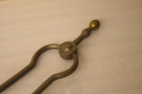 Bean ends, round shafts with swell near round swing joint, short round shaft handle with swell at end and brass acorn finial