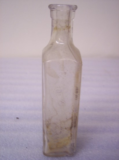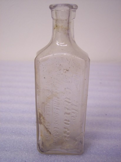 Clear glass bottle, no stopper, with raised lettering on one side "The Economy/Cut Rate Drug Co., Inc./Knoxville, Tenn"