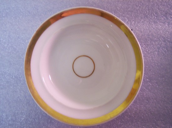 Small, round white plate with one thin, small gilt circle at its center.