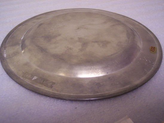 Flat rim, reed under lip, shallow base, very faint mark on back