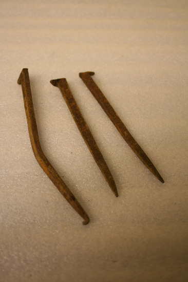 Used in construction of Julius Deming house, the Lindens, on North St. in Litchfield between 1790-1793. The spikes were discovered during alterations to the home in 1937/1938