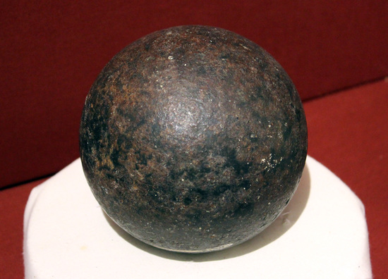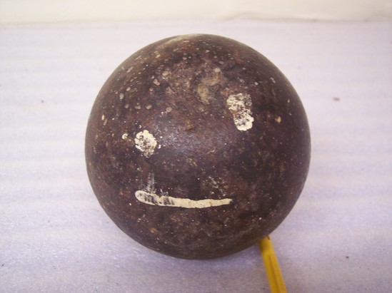 A: Round cannon ball painted black - Revolutionary War B: Round cannon ball - Civil War