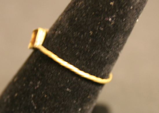 Lady's gold ring, twisted gold wire with square setting - setting on angle, stone missing. Engraved on the back with the initials "P. H."