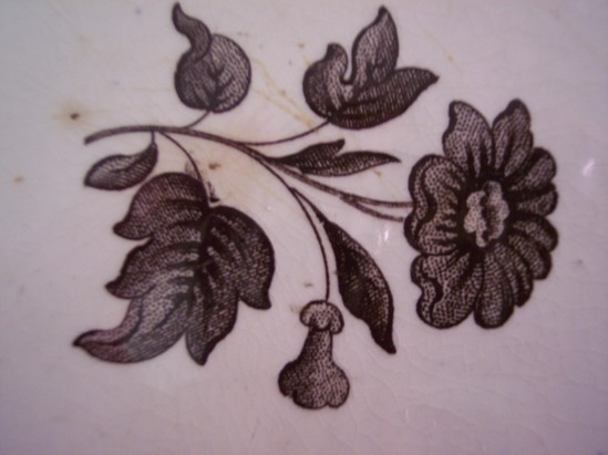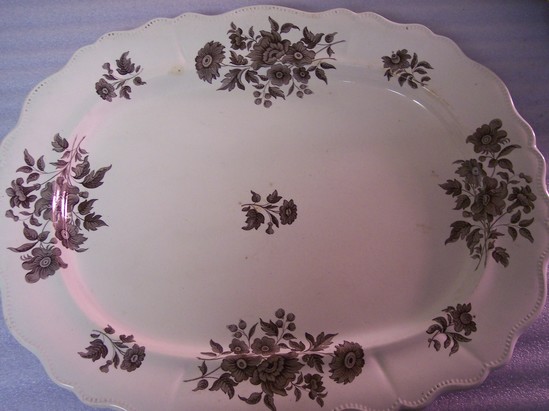 Platter with lobate edges and impressed raised dots on the border with sprays of brown flowers. Marked on the bottom in brown "Hair Brown/Dresden Flowers/J. & W. R."