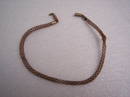 Woven brown hair upe of net work with cylinder ends and linked catch of gilt metal
