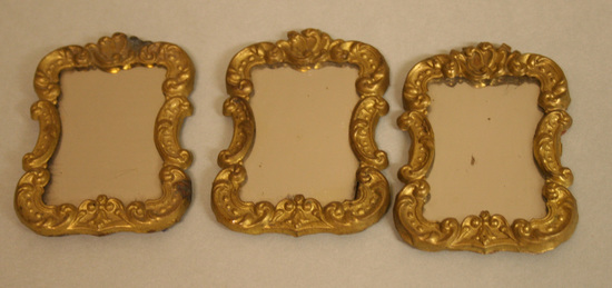 3 mirrors - all cardboard backed, mirror glass with cyma curved gilt stamped tin French design frames.