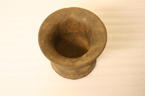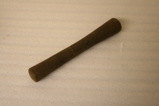 A: Mortar - round step base with inverted bell shaped top B: Pestle - cylinder thinner in middle then ends with slightly rounded ends