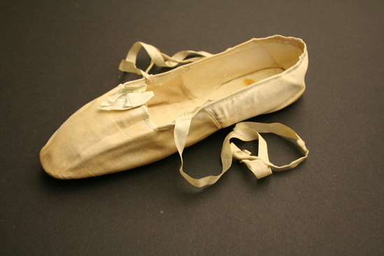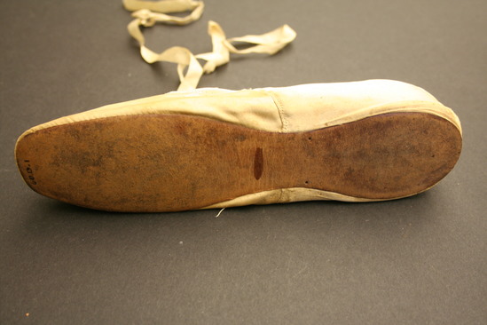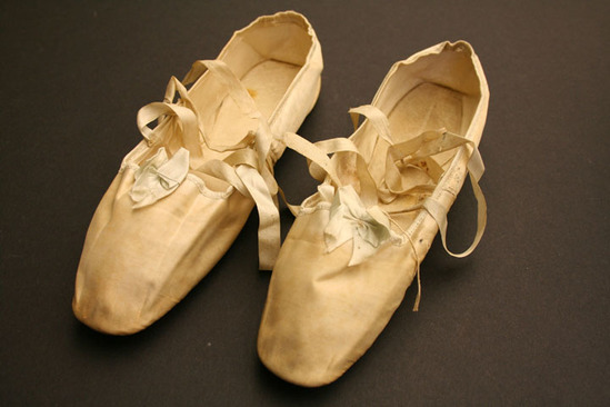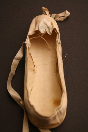 Wedding slippers of Mrs. Meafoy. She died in 1904 at the age of 99