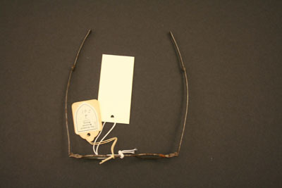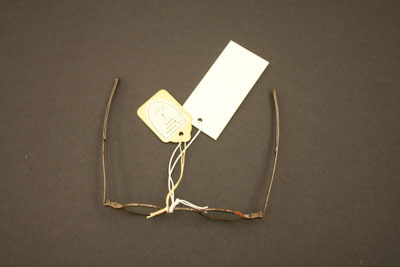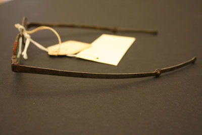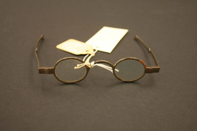 The lenses are small, oval shaped. One lense clear glass, the other slightly greenish tinge to glass; extension bows