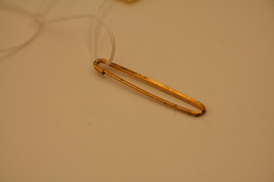 Gold colored thin bar pin for tie. Triangular design - simple.