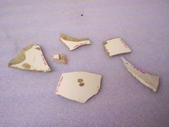 These shards were found by Dr. Handsmen when the power company was digging trences for electrical lines for lights on the green. The shards were found on the lower green across from what is currently Superior Food Stores