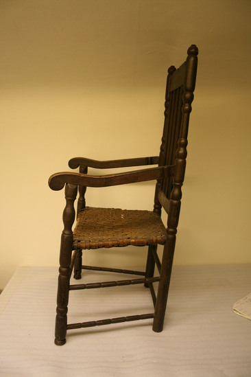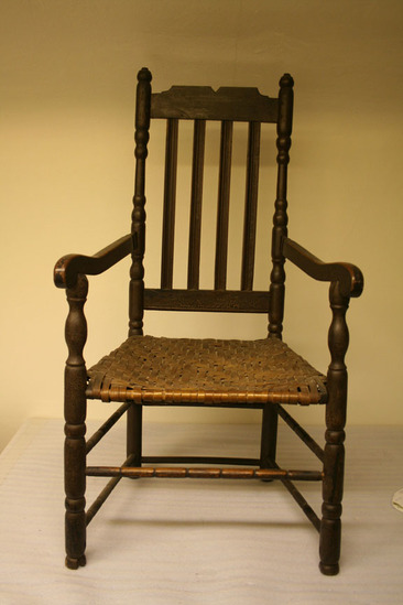 Chair originally owned by Col. Benjamin Hinman (1720-1810) of Woodbury. Chair was brought to Woodbury by his father from Fairfield, CT
