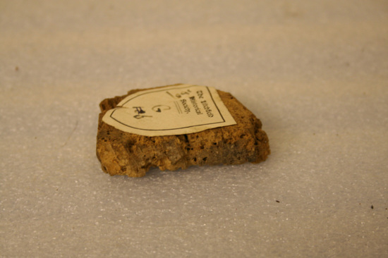 Piece of wood from Charter Oak. Irregular shape. Has silver plaque mounted on one side "Charter Oak/Hartford Conn./Oct. 31, 1687".
