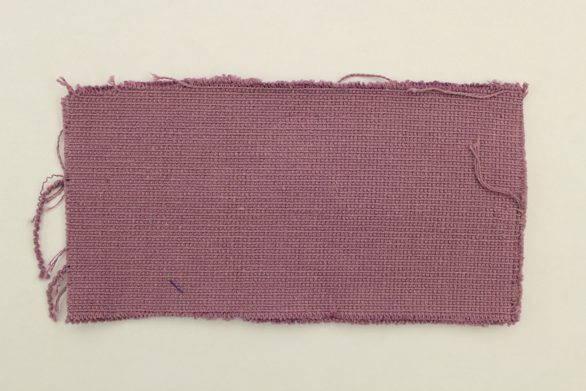 Rectangular fabric swatch made of synthetic material. Purple in color and very thick. Fairly open weave in a crosshatched pattern and is rough to the touch.