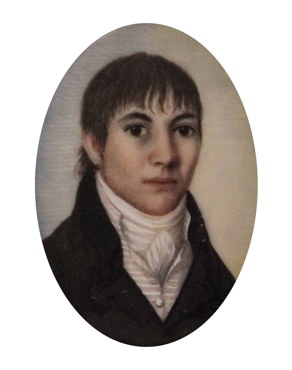 Born in Milton, a village in the town of Litchfield, Anson Dickinson began advertising himself as a miniature painter in 1802. He traveled to New York in 1804, where he was painted by Edward Greene Malbone, the leading American miniaturist of his day. Dickinson painted over 1,500 miniatures over the course of fifty years, traveling as far as Canada and South Carolina to paint. He kept a studio in New York for a period, and returned frequently to Litchfield where he painted prominent residents and students of the Female Academy and Law School.