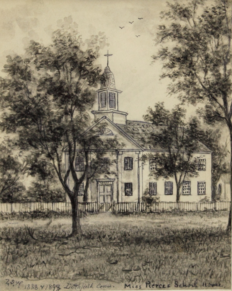 The LHS archival collection contains a letter written by Z.S. Webb to Emily Noyes Vanderpoel in 1898. In the letter, Webb writes that he is sending an ink sketch of the "Seminary" to her, a replica of a sketch he completed in 1837 or 1838. Webb noted both of these dates at the left of the drawing, underneath his name. Webb must have been living in Litchfield at the time, as he writes that he attended the school in 1837-1838 under a Miss Finch, who succeeded Miss Pierce.