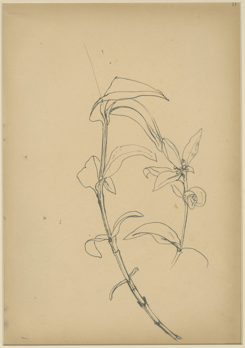 Pencil and ink drawing of a lily. No date given. Matted.