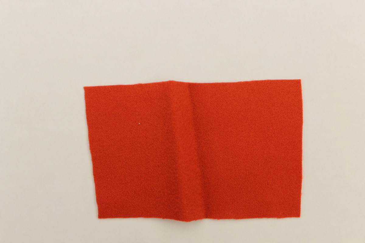Rectangular red felt fabric swatch. Swatch is heavy to the touch.