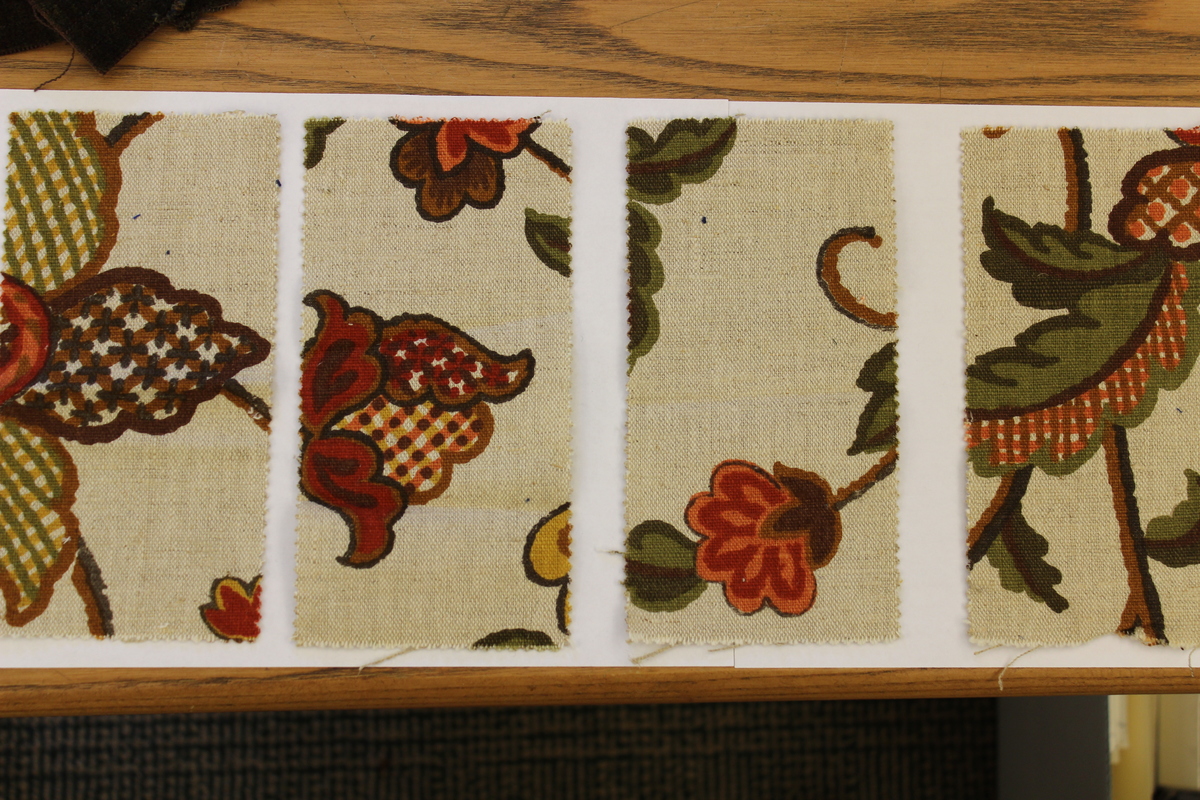 Fabric swatches from a decoration job for the first National Bank conference room.