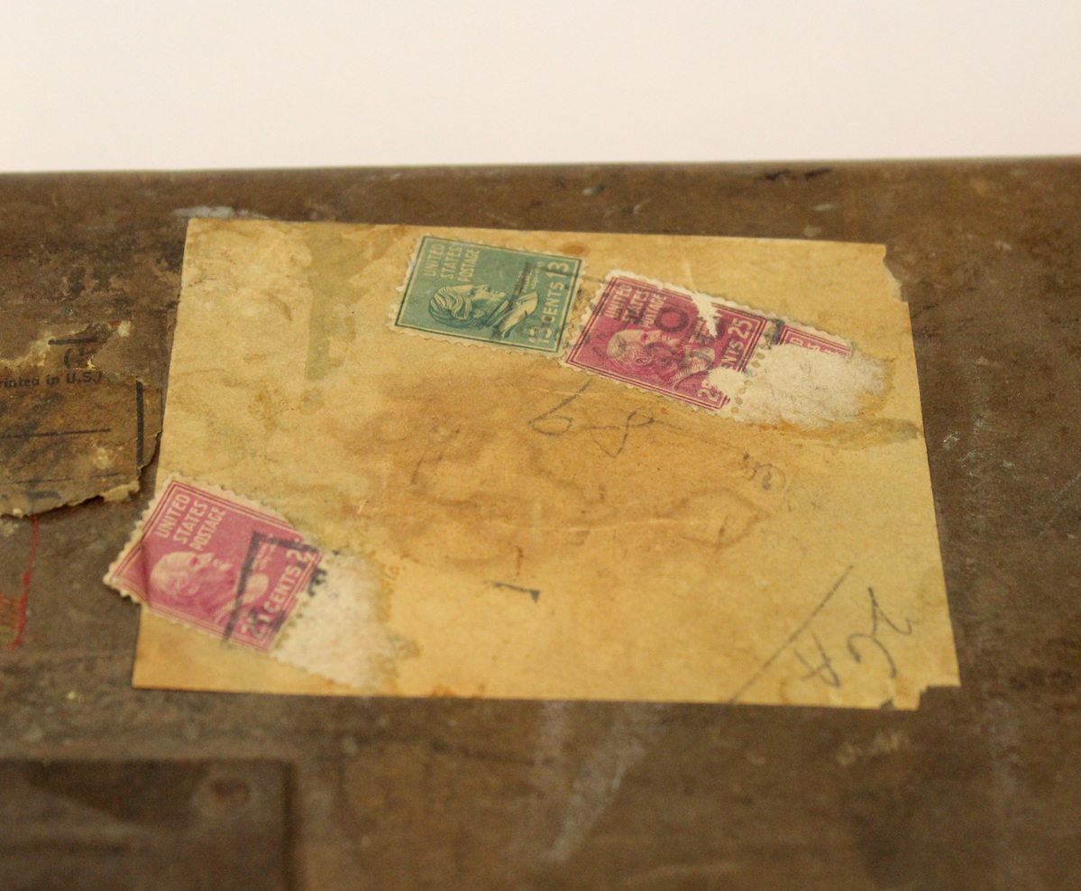The laundry case was dated using the three presidential stamps visible on the lid. Oswald W. Marrin Jr. (1919-2007) was attending Brown University between 1938 and 1942, before joining the Marines and serving in the Pacific during World War II. One of the labels on the case is addressed to his mother. It is likely that the laundry case was used both before and after 1938, but no other dates are visible.