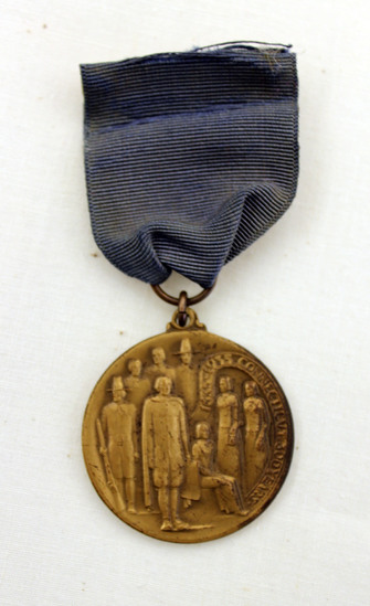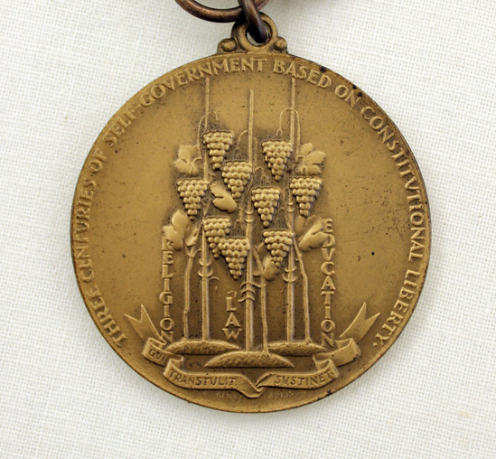 This medal commemorates Connecticut's Tercentenary Celebration of 1935. It belonged to Col. Samuel H. Fisher of Litchfield, CT, who was the chairman of the Tercentenary Commission of the state.